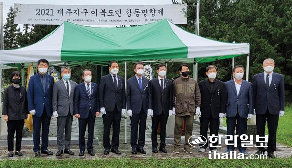 제주지구 이북도민연합회(회장 노현규)는 망향의 한을 달래기 위해 지난 16일 제주애향묘지에서 이북5도민과 김기찬 황해도지사를 비롯 제주특별자치도와 제주시 등 관계기관 인사들이 참석한 가운데 합동망향제를 개최했다.
