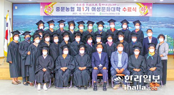 중문농협(조합장 김성범)은 최근 중문농협 유통사업단 대회의실에서 '제1기 여성문화대학 수료식'을 가졌다.