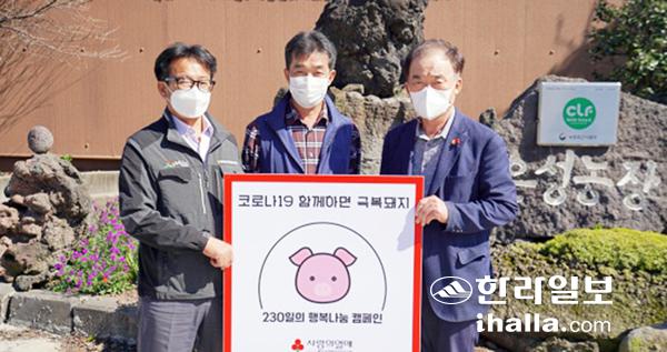 은성농장(대표 장석진)은 최근 농장 앞에서 제주사회복지공동모금회(회장 김남식)가 진행하는 기부 캠페인인 '양돈농가 행복(福)나눔 릴레이'에 동참하고 기부금 전달식을 가졌다.