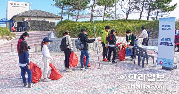 제주도관광협회(회장 부동석)는 지난 23일 제주시 김녕해수욕장에서 환경정화 자원봉사 비치클린 '줍젠'프로젝트를 추진했다.