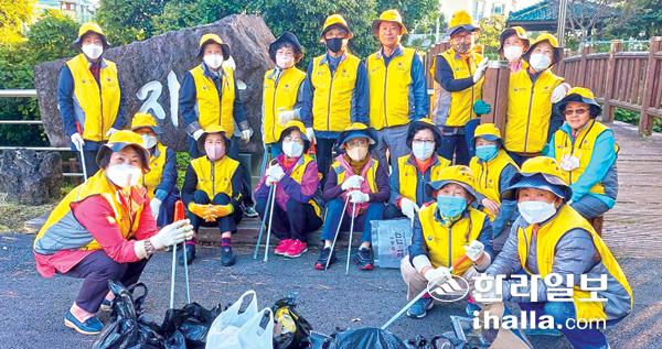 서귀포노인대학 제18기 자원봉사클럽(코치 김종길)은 지난 22일 서귀포시 동홍동 소재 산지물에서 회원 18명이 참여한 가운데 공원 내 담배꽁초 등 각종 쓰레기줍기 봉사활동을 전개하고 11월 사업계획도 논의했다.