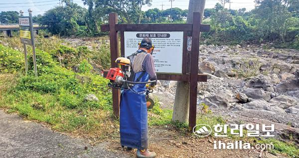 (재)제주문화유산연구원 제주자연문화재돌봄센터(센터장 강영제)는 지난 20일 '천연기념물 한라산 천연보호구역' 신례천과 효돈천에서 주변 환경 정비, 안내판 청소 등 문화재 돌봄 활동을 실시했다.