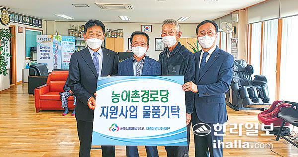 MG희망나눔 농어촌 경로당 지원사업의 일환으로 진행된 전달식에는 김한신 새마을금고중앙회 제주지역본부장, 고남수 장전리 경로당 회장, 정개은 남원1리 경로당 회장 및 관계자들이 참석했다.