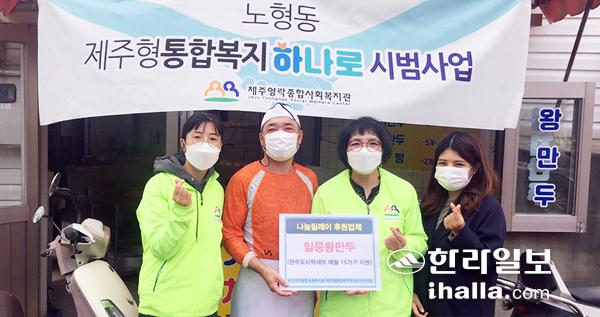 제주시 노형동 소재 일등왕만두식당(대표 김정득)은 제주영락종합사회복지관(관장 이상언) 제주형통합복지하나로시범사업팀의 사업을 위해 2020년 4월부터 매달 '만두도시락세트'를 후원하고 있다.