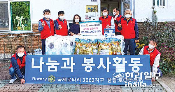 국제로타리3662지구 한림로타리클럽(회장 김호상)은 지난 26일 회원들과 함께 아동복지시설 예향원에 후원물품(KF94마스크와 휴지, 세제 등)을 전달했다. 클럽은 매년 이곳에 지속적인 지원과 봉사활동을 통해 어려운 이웃들에게 나눔을 실천하고 있다.