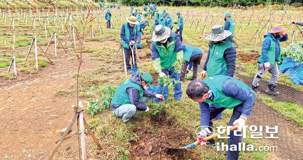 새마을지도자제주특별자치도협의회(회장 안창준)는 지난 19일 우도면 우도봉에서 ‘기후위기대응 탄소중립 실천 결의대회’를 개최하고 우도봉 일대에 탄소흡수율이 뛰어난 후박나무 1000본을 식재했다.