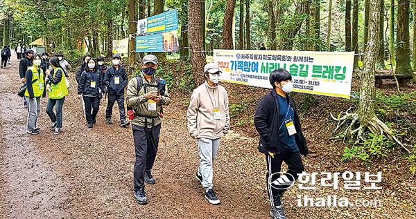 제주도체육회(회장 부평국)는 도민의 건강 증진 및 생활체육 참여를 활성화하고 스포츠 활동을 통해 가족과 함께하는 시간을 마련하기 위해 최근 '2021 가족참여 사려니 숲길 트레킹 프로그램' 행사를 진행했다.