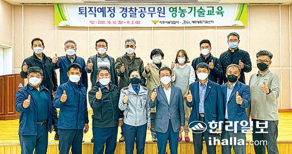 제주도농업기술원 제주농업기술센터(소장 신양수)와 제주서부경찰서(서장 김영옥)는 2일 제주농업기술센터에서 제주서부경찰서 퇴직 예정 경찰 공무원 영농기술 교육생 2개과정 28명을 대상으로 수료식을 진행했다.