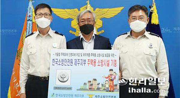 한국소방안전원 제주지부(지부장 김경범)는 4일 제주소방안전본부(본부장 박근오)에 주택용 소방시설을 기증했다. 이번 기증물품은 단독경보형 감지기 660개로 의용소방대를 통해 취약계층에 보급될 예정이다.
