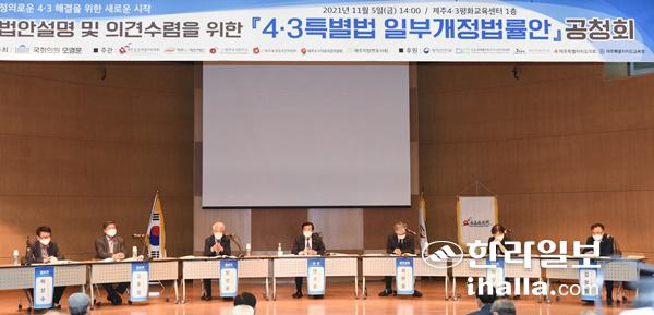 오영훈 국회의원(더불어민주당, 제주시 갑)과 제주4·3유족회는 5일 제주4·3평화교육센터에서 '제주4·3특별법 일부개정법률안 공청회' 를 개최했다. 공청회는 제주4·3평화재단, 제주지방변호사회, 제주4·3연구소, 제주4·3기념사업위원회, 제주4·3범국민위원회가 공동 주관했다.
