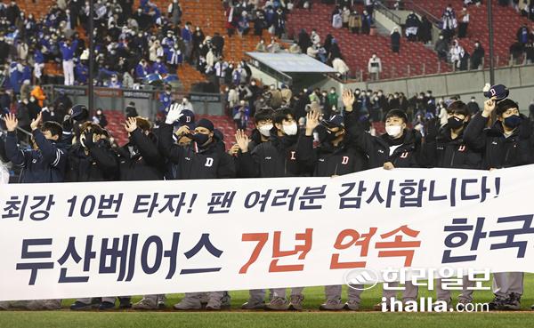 두산은 김태형 감독이 지휘봉을 잡은 2015년부터 올해까지 7년 연속 KS 진출에 성공했다.