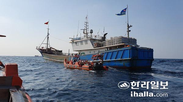 A호로 접근하는 제주해양경찰서.