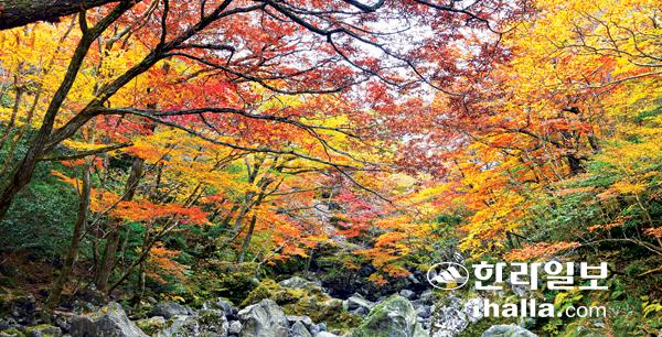 온통 알록달록 붉게 물든 단풍우로 장관 이뤄4.3 주둔지와 수로길 등 역사.문화 유적 곳곳 산재