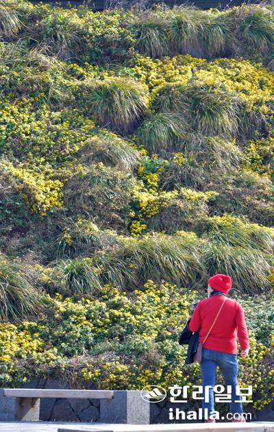 15일 제주시 한경면 고산리 해안가에 들국화가 만개해 가을의 향기를 한껏 전해주고 있다. 강희만기자