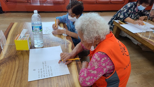 제주시 한림읍 금능리 경로당에서 진행된 '제주 해녀 꿈바당 학교'. 사진=제주평생교육장학진흥원 제공