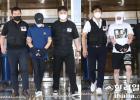 지난 7월 27일 제주동부경찰서에서 검찰로 송치되고 있는 백광석(왼쪽)과 김시남. 한라일보DB