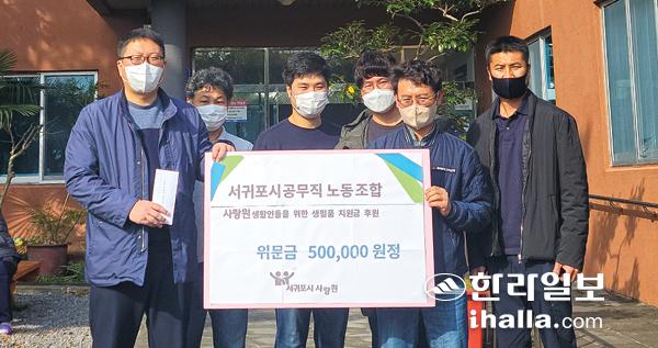 제주특별자치도공무직노동조합 서귀포시지부(지부장 김춘건)는 지난 17일 지역내 3개 복지시설(서귀포시 사랑원, 성자현, 서귀포 해오름 주간 활동센터)에 후원금 150만원을 전달했다.