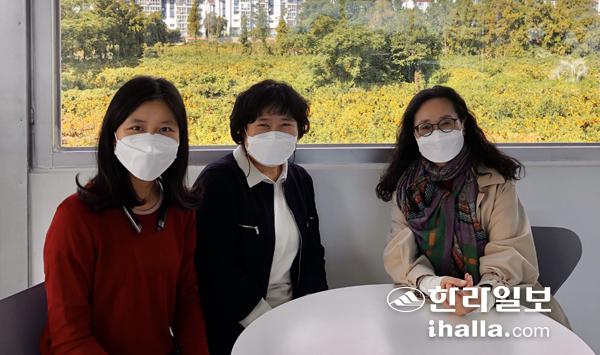 '그레구아르와 책방 할아버지'를 두고 이야기를 나눈 이수향·김미은·강창숙씨(왼쪽부터). 사진=서귀포시민의책읽기위원회 제공