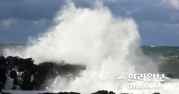 강풍을 동반한 비가 내린 1일 제주시 용담해안가에 집채만한 높은 파도가 들이치고 있다. 이상국기자
