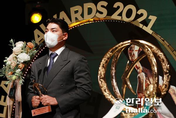 베테랑 수비수 홍정호는 7일 오후 서울 서대문구 스위스그랜드호텔에서 열린 하나원큐 K리그1 2021 대상 시상식에서 최우수선수(MVP)의 영예를 안았다.