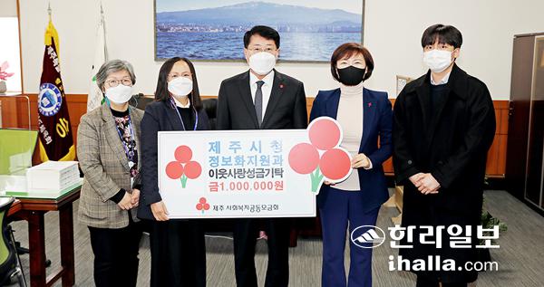 제주시는 8일 '2021년 제주특별자치도 협치·협업 우수사례'로 선정돼 받은 100만원을 사회복지공동모금회에 전달했다. 성금은 '협치·협업 우수사례 경진대회'에서 최우수상을 수상하며 받은 포상금이다.