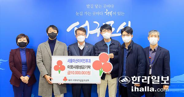 서울아산이비인후과(원장 심병수, 조재형, 김종준)는 지난 7일 서귀포시청 시장실을 방문해 연말연시 어려운 이웃을 위해 사용해 달라며 성금 1000만원을 기탁했다.