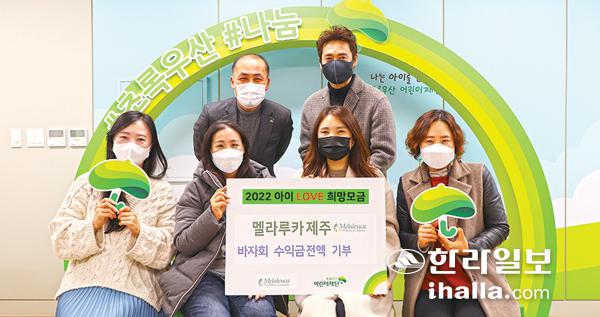 웰니스 기업 멜라루카의 제주팀과 모던돔베 김성철 대표는 지난 7일 초록우산 어린이재단 제주지역본부(본부장 김희석)에 제2회 멜라루카 바자회 수익금 100만원 전액을 기부했다.