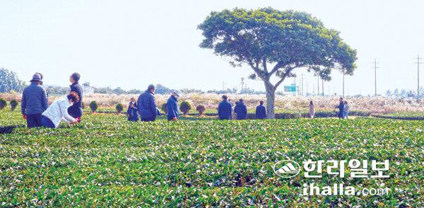 8일 오설록티뮤지엄을 찾은 관광객들이 녹차 밭을 걷고 있다. 이상국기자