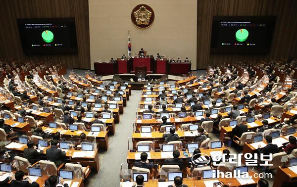 국회는 정기국회 마지막날인 9일 오후 임시회 본회의를 열고 제주4·3 희생자에 대한 보상규정을 담은 '제주4·3사건 진상규명 및 희생자 명예회복에 관한 특별법' 일부개정법률안을 통과시켰다. 연합뉴스
