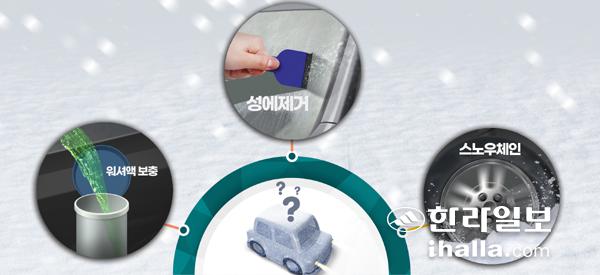 겨울철 유용한 팁=차량의 앞뒤 유리를 닦는데 도움을 주는 워셔액은 보통 사계절용으로 사용하지만 여름용 워셔액을 주입했다면 겨울용으로 바꿔야 한다. 여름용 워셔액을 겨울철에 사용했을 경우 워셔액이 얼어버려 곤란해질 수 있다. 또 한파가 예보됐을 때는 주차 시 와이퍼를 세워두면 차량 유리에 붙는 상황을 예방할 수 있다. 눈이 내릴 것으로 예보됐을 때도 와이퍼를 미리 세워두는 것이 좋다.