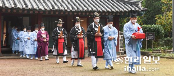 고·양·부 삼성사재단은 지난 10일 삼성혈에서 탐라(탁라)를 창시한 삼을나의 위업을 기리고 제주도의 번영과 도민의 안녕을 기원하는 2021년 '탁라시조 건시대제'를 봉향했다. 이날 초헌관에 고영권 제주도 정무부지사, 아헌관에 이경용 제주도의원, 종헌관에 고봉주 제주시농협 조합장이 참례했다. 이상국기자