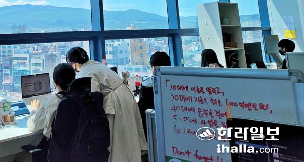 최 대표는 "제주지역 인재들과 협업하며 기업과 인재 성장을 함께 도모하는 프로그램에 취지가 좋아 탐나는기업에 지속적으로 참여하고 있다"며 "취업사이트에 공고를 내고, 직원을 선발하는 기존의 채용 방식은 기업이 원하는 인재를 뽑는데 아무래도 한계가 있을 수 밖에 없지만 탐나는인재들은 더큰내일센터에서 팀 프로젝트를 수행하며 문제 해결 능력을 갖췄고, 또 실습과 인턴십을 거치며 실무 경험을 쌓거나 실무를 맡은 적이 있는 이른바 '검증된 인재'들이기 때문에 기업 입장에선 채용하는데 있어 리스크가 덜하다"고 말했다.