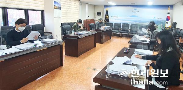 지난 19일 한라일보 3층 회의실에서 2022 한라일보 신춘문예 예심이 진행되고 있다.