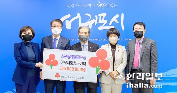 스프링데일골프장(회장 강국창)은 20일 서귀포시청 시장실을 방문해 코로나19 확산으로 경제적 어려움을 겪고 있는 소외계층 지원 성금으로 500만원을 기탁했다.