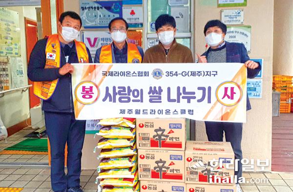 제주월드라이온스클럽은 지난 16일 서귀포시 토평동에 위치한 정혜재활원을 방문해 쌀 10포대와 라면 5박스를 기부했다. 제주월드라이온스클럽 관계자는 "앞으로도 꾸준히 나눔을 실천하겠다"는 뜻을 전했다.