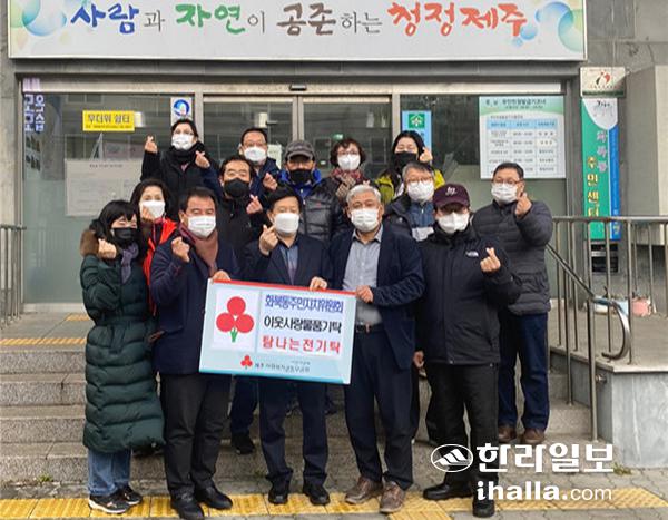 제주시 화북동주민자치위원회(위원장 김충임)는 지난 17일 화북동주민센터에 주민자치센터 작품공모전(랜선전시회) 최우수상 시상금(탐나는전 상품권)을 지정 기탁했다.