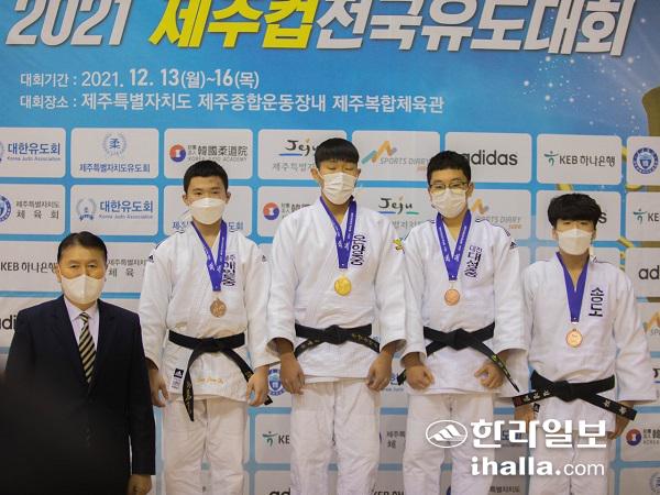 올해 제주컵 전국유도대회 남중부 -81㎏급에서 2위를 차지한 성준호(왼쪽 두 번째) 학생.