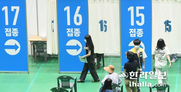제주시내 접종센터에서 접종하는 고3학생. 한라일보DB