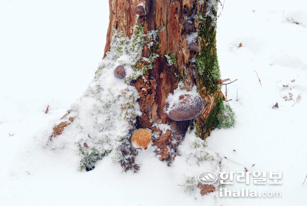 겨울이다. 잎을 떨어뜨린 나무도 휴식에 들어가고, 꽃을 찾던 나비도 동면에 들어갔다. 거의 모든 생명의 움직임은 정지 상태가 되고, 먹이를 찾는 산새들만이 간간이 파드닥거리는 한겨울, 흰 눈이 산야를 덮고 찬바람만 스산한 이 추운 시기에도 들에서 버섯을 만날 수 있을까?