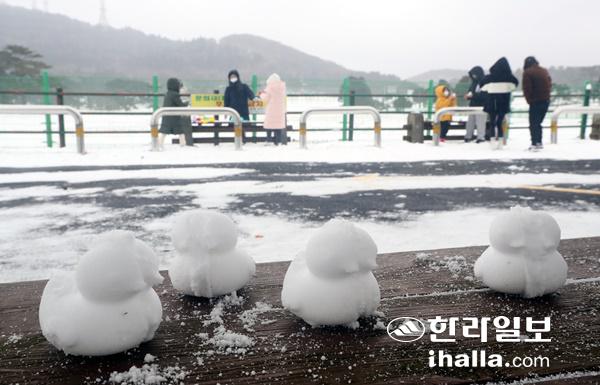 제주 산간지역에 눈이 내리기 시작하면서 대설특보가 발표됐다.