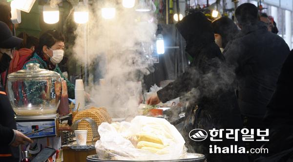 추운 날시 탓인지 호떡, 어묵 등을 판매하는 점포에는 추위를 녹이려는 사람들이 몰려 있었고, 시장내 음식점 안에는 점심을 해결하기 위해 찾은 손님들로 북적거렸다.
