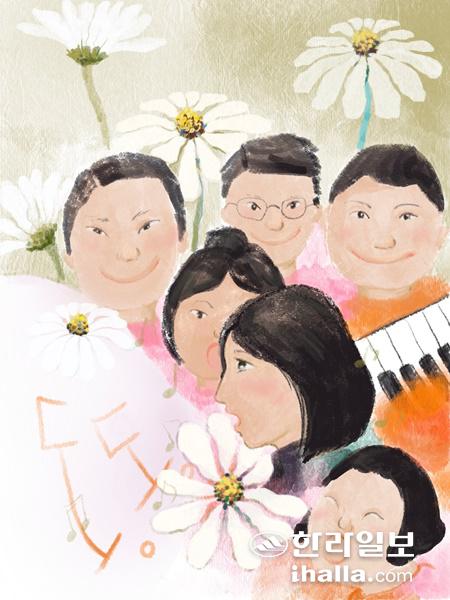 그녀는 노래의 처음부터 끝까지 쉬지 않고 '동'을 불러댔고, 그 위에 사람들의 '동' 소리가 한 겹, 두 겹 쌓이며 아름다운 화음을 만들어냈다. 사서가 직접 작곡한 노래라는데, 멜로디가 좋아서 그런지 가사가 없어도 참으로 아름다운 음악이었다. 사서는 그녀가 낼 수 있는 최대한의 저음을 좀 더 연습해 달라고 부탁했다. 다음번엔 제대로 된 노랫말도 얹어질 터였고 아마 음악은 더욱 아름다워질 것이다. 그 음악에 그녀도 속할 수 있다는 데 생각이 미치자 가슴이 벅찼다.