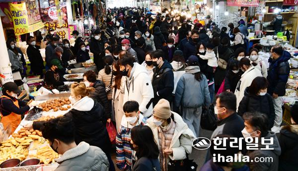 2일 새해 처음 열린 제주시민속오일시장에 많은 시민과 관광객들이 찾아 활기가 넘치고 있다. 강희만기자