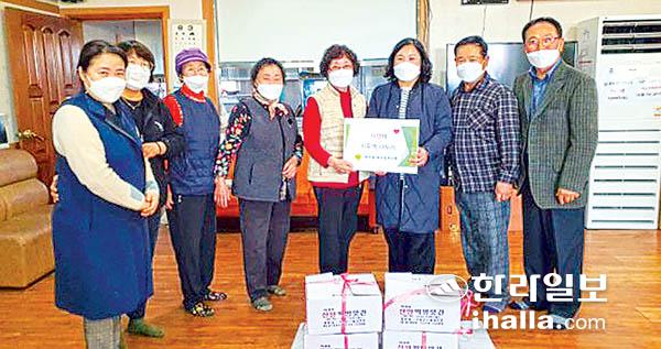 서귀포시 효돈동새마을부녀회(회장 오은실)는 최근 연말연시를 맞아 신·하효노인회에 시루떡 8상자를 전달했다. 이날 전달한 시루떡은 지역 내 경로당을 통해 지역 어르신 가정에 배부됐다.