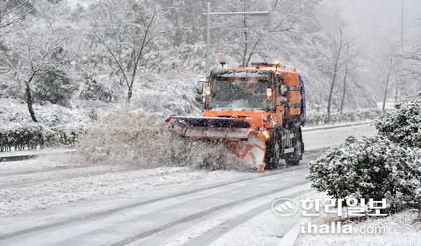 제주 중산간지역 제설작업. 한라일보DB