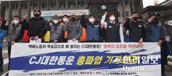 CJ대한통운 노조 파업 기자회견. 한라일보DB