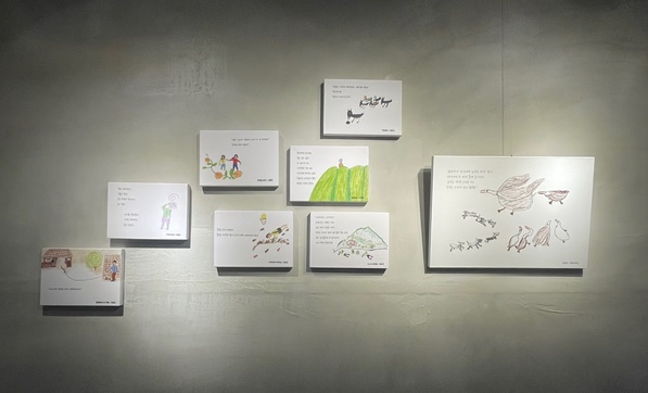 산지등대 카페물결에서 진행 중인 '제주 어르신 그림책 이야기' 전시.