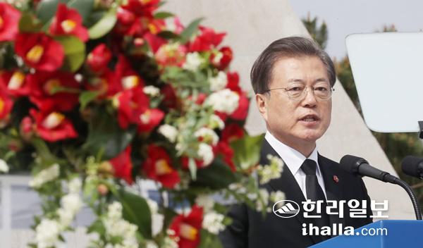 지난 2020년 추념식에 참석한 문재인 대통령. 한라일보DB