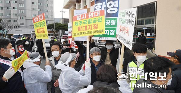 제주지역 임업인들의 국립공원 확대 반대. 한라일보DB