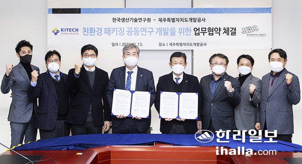 제주특별자치도개발공사는 지난 13일 제주개발공사 임시사무연구동에서 한국생산기술연구원과 '친환경 패키징 공동 연구개발을 위한 업무협약'을 체결했다.